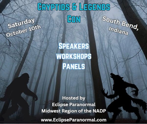 Join us for the first of its kind in Northern Indiana, the Cryptids and Legends Con featuring Cryptid Researchers, Native American Narrators sharing their nation's legends, and paranormal researchers both in-person and virtually.